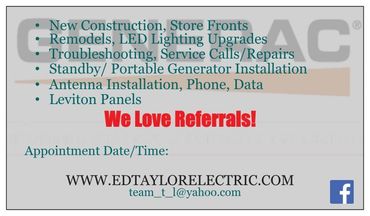 Ed Taylor has been a Local Electrician since the early 80's. Working for several companies over the years, Ed started ED TAYLOR ELECTRIC in 1999. We currently have over 45 years of experience in Residential and Commercial needs. Jacob Taylor now runs the crazy ship that is ED TAYLOR ELECTRIC.